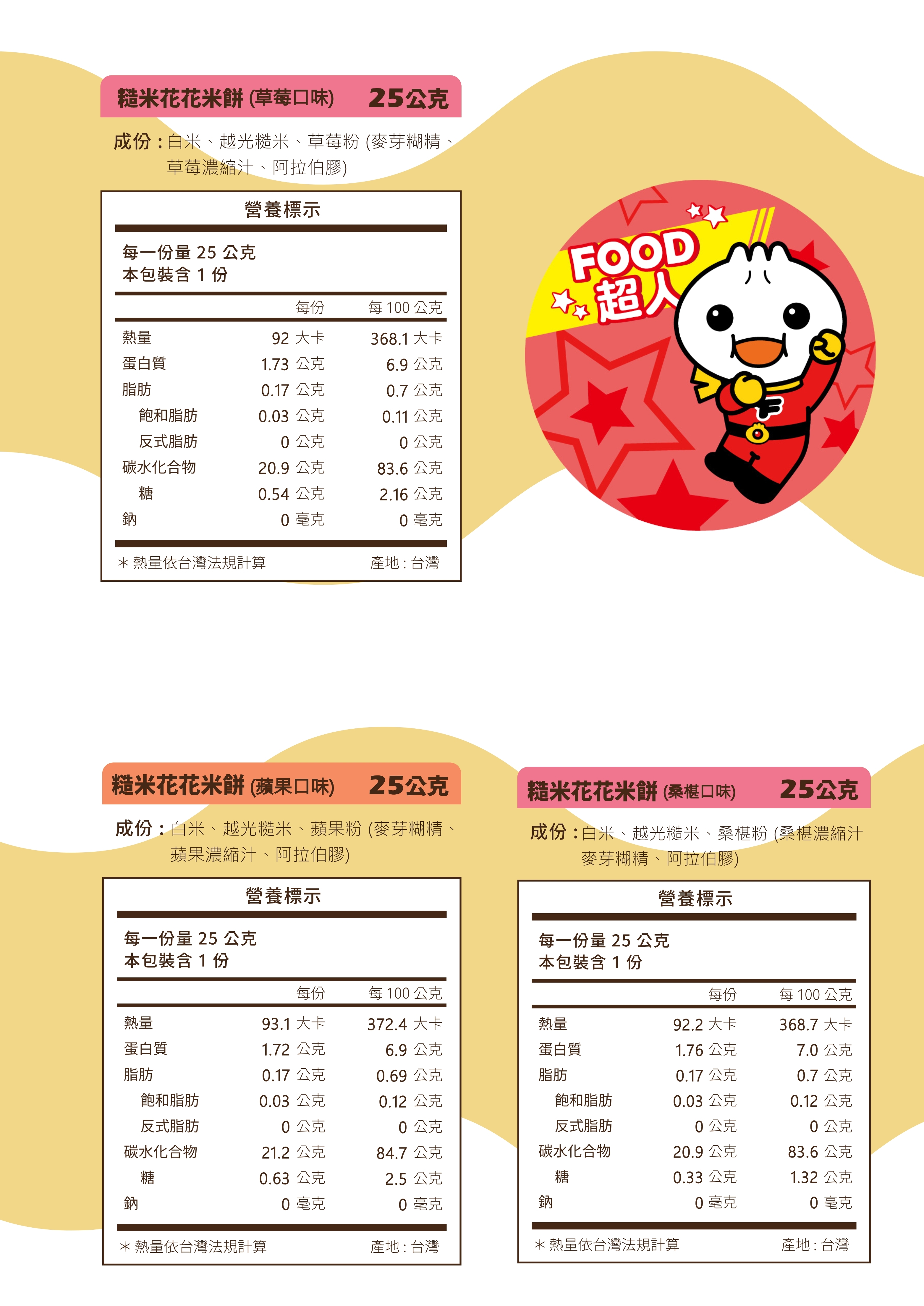 Food超人系列- 糙米花花雙口味【四入組】- 桑椹、草莓 (組合商品不參與新會員活動)-寶寶糙米餅